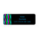 Diese Rücksendeadressen-Aufkleber haben ein modernes Design von neonrosa, grünen und blauen abgerundeten Rechtecken in steigender und abnehmender Größe, die vertikal auf einem schwarzen Feld laufen.