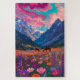 Step into a vibrant dream with this psychedelic mountain landscape. This surreal digital artwork features a pair of wild horses grazing in a lush, neon-colored meadow, surrounded by towering blue peaks. Above, the sky swirls with mesmerizing ribbons of hot pink, turquoise, and purple, creating a trippy, electric atmosphere. Perfect for fans of fantasy art, synthwave aesthetics, and colorful nature scenes. A challenging and visually rewarding design for puzzles, posters, and statement wall art.