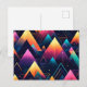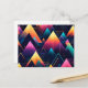 Ein lebendiges und abstraktes geometrisches Muster mit überlappenden Dreiecken in einem Kaleidoskop von Neonfarben. Die Dreiecke ähneln schroffen Berggipfeln, die eine dynamische und dynamische Komposition vor einem dunklen Hintergrund schaffen. Das Bild ist in hellen Farbtönen gehalten, darunter Rosa, Orange, Gelb, Blau und lila, wodurch ein visuell stimulierendes und auffälliges Design entsteht
