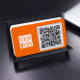 Modèle de carte de visite avec un arrière - plan de couleur unie orange clair, code QR et lettres à la main polices blanches de style .Design simple et tendance par Alma Wad .Personnalisez les deux côtés maintenant .Il vient 100 dans un pack.