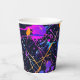 Neon Paint Spritzer Party Paper Cups. Funky abstrakter Spritzer in dunkelblau, lila, neonorange, aqua, violett, blau.