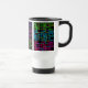 This vibrant neon cat pattern blends purple, green, blue, magenta, and bright yellow on a bold black-and-white mug, creating an eye-catching modern look. The energetic color mix and playful graphic style make this design stand out with strong neon art and colorful pattern appeal.