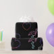 Ein Papier der anderen Art, mit rosa und lila Neonflamingos, orange, rosa und lila Neonherzen auf schwarzem Hintergrund. Nutzen Sie dieses coole und unterhaltsame Design für Ihre Weihnachts-, Geburtstag- und Jubiläumsgeschenke.