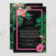 Ein modernes und dennoch Retro-Thema Neon rosa tropischen botanischen Botanicals auf einem schwarzen Hintergrund. Ein schönes Hochzeitsdesign, ideal für den Sommer. Die tropischen Pflanze in Neonrosa sind mit Palmen, Blume aus rosafarbenem Hibiskus und Blume aus Plumerias Frangipanis gestaltet. Schwarz, Rosa und Grün dominieren dieses tropisch-rosa Neondesign. Die moderne kalligraphische Typografie kontrastiert perfekt mit dem schwarz-rosa Hochzeitsdesign. Eine elegante Hochzeitskarte mit modernem, einfachem Design. Es stehen auch passende Hochzeitsstilleriedateien und andere Hochzeitsformate zur Verfügung.