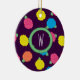 Stilvolle Rose in leuchtend neonenrosa, blau, gelb und korallenfarben mit neongrünen Blätter sind über einen lila Hintergrund gestreut, um ein lustiges Blumenmuster zu schaffen. Passen Sie das Monogramm auf diesem Ornament mit Ihrem Initial an, um es einzigartig zu Ihrem eigenen zu machen.