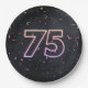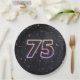 Glühendes Neonzeichen auf schwarzem Hintergrund mit Konfetti für 75. Geburtstagsfeier.