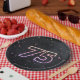 Neon Sign auf der schwarzen Papiertafel Pappteller