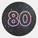 Glühendes Neonzeichen und Konfetti auf schwarzem Hintergrund für die 80. Geburtstagsparty.