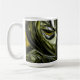Neon abstract swirl coffee mug with green, yellow, and magenta artwork. 11 oz ceramic cup, glossy, microwave and dishwasher safe—perfect for gamers, artists, and modern desk decor.