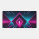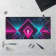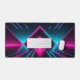 Enter the digital grid and elevate your gaming battle station with this spectacular synthwave desk mat. This massive horizontal canvas seamlessly transports you into a retro-futuristic virtual reality tunnel. Featuring brilliant neon magenta and electric cyan glowing pyramid arches set over a dark, highly reflective glossy floor, this artwork flawlessly captures the intense, high-energy aesthetic of 80s outrun and modern cyber-pop culture.