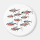 Neon Tetra Design zeigt eine Schule zum Schwimmen von Neontetras. Handgezeichnete Grafik dieser beliebten tropischen Aquarienfische für Fans und Halter.