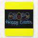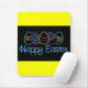 Die Eier sind in Neonfarben wie Rosa, Gelb, lila und Blau dekoriert. Auf der Unterseite dieses Designs ist Happy Oaster gedruckt. Auf die Rückseite wird ein schwarzer Hintergrund aufgetragen. Dieses Design wird in verschiedenen Hinterrunden und zwei Mousepads dargestellt. Sie können diesen Artikel nach Ihren Wünschen anpassen.
