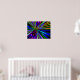 Helle, digitale Kunstwerke, die aus einem Fraktal entstanden sind und in eine Explosion von Farbenbogen nachgebildet sind, die an Neonlichter auf schwarzem Hintergrund erinnert.