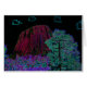 Ein rotes Neonglühen betont die vertikalen Spalten des Eruptivgesteins und hebt die Nuten auf dem Gesicht des Turms hervor. Ein Ponderosa Kiefernbaum, wenn seine schwarze Barke mit grünem Blätter und blauen glühenden Rändern umrissen ist, steht im Vordergrund hoch, der Kontrast dem Turm und einem schwarzen Himmel hinzufügt. Aqua farbige Wolken schwimmen in den Himmel. Das rockpile an der Basis des Turms wird in Magentarotem und in Lila hervorgehoben. Teufel-Turm-nationales Monument ist im Black Hills von nordöstlichem Wyoming.
