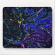 Digital-Kunstentwurf schafft diesen einzigartigen blauen, rosa, lila und gelben Neonentwurf auf einem schwarzen Hintergrund.
