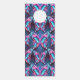 Lebhaftes, symmetrisches Muster dominiert von farbenprächtigen Schmetterlingen. Die Schmetterlinge zeigen eine Mischung aus blauen und rosa Neonfarben, wodurch sie einen hellen Effekt vor einem dunkleren Hintergrund haben.