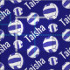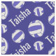 Sport personalisierter Netzball mit blauem Streifen Muster sportliche Design Stoff. Weiße und blaue Netzbälle und dunkelblaue Hintergrundfarbe, die bei Bedarf geändert werden kann. Ideal für Netballspieler, Trainer und Netballfans. Anpassen mit Ihrer eigenen Wahl des Namens, derzeit liest Taisha. Grafische Kunst und von Sarah Trett für www.mylittleeden.com entworfen