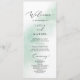 Ce programme de mariage à l'aquarelle verte est parfait pour un mariage moderne. Le design simple et classique présente une touche d'eau verte à la sauge pastel avec un style minimaliste et élégant. Inclure le nom de la mariée et du marié, la date et le lieu du mariage, le message de remerciement, l'ordre de service, la fête de la mariée et un mémorial optionnel "en mémoire d'amour".