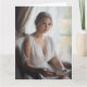 Diese bezaubernde Kunstkarte zeigt ein ruhiges Aquarellportrait einer schönen blondhaarigen jungen Frau in einem weißen Seidenkleid. Sie sitzt an einem Fenster und hält ein offenes Buch und dreht ihren fesselnden Blick zum Betrachter. Der sanfte Aquarellstil vermittelt wunderbar den stillen Anmut und literarischen Charme der Szene. Diese Karte ist ideal, um eine nachdenkliche Notiz zu senden, eine Nachricht an einen anderen Buchliebhaber, oder für jeden, der Kunst schätzt, die Momente der ruhigen Verbindung einfängt.