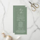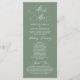 Die neue Mr. und Mrs., Elegant Vintag Classy Sage Green Design Thema, Hochzeitsfeier Programm in Karte (lang). Es ist mit Scrollakzent entworfen, der personalisiert werden kann mit benutzerdefiniertem/personalisiertem Text für Ihr Brautparty, Zeremonie Details, Gedenkhinweise und Dankeschön-Nachricht.