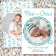Neu in der Crew Baby-Geburtskarte, personalisiert mit Ihren Fotos vorne und hinten. Nautisches Design mit Seilrahmen und Ankern in aquamarin-weißer Farbpalette. Sie können den Namen des Babys, das Geburtsdatum und alle anderen Geburtsdaten auf der Vorderseite sowie Ihre personalisierte Nachricht auf der Rückseite hinzufügen.