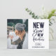 Neujahrliche Abenteuer, Urlaubsfotokarte. Moderne schicke Typografie in dunkelmarineblau auf frostigem Grau mit Koordination von Marine und goldener geometrischer Musterunterlage.
