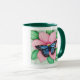Anpassbare Tasse mit einem blauen Schmetterlingsdesign aus Polyfarbenstift und Graphit und einem inspirierenden Vers.
