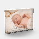 Modernes Foto. Benutzen Sie einfach diese Vorlage, um Ihr eigenes Foto für Ihr süßes Baby hinzuzufügen und mit Babynamen und Geburtsdaten in dieser eleganten Schrift-Typografie zu personalisieren. Zeigen Sie es im Kinderzimmer, auf Ihrem Gantelstück oder an einem beliebigen prominenten Ort.