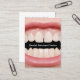 Hier ist ein Dentist Visitenkarten-Template in einem kraftvollen Stil mit grafischem Design eines Mauls mit weißen Zähnen und Ihr Geschäft oder Name hervorgehoben durch Ihren Namen im Mund und Kontraste schön zu heben. Vorgestellt auf unserem größeren Visitenkartenbestand, der größer ist als die Standardgröße für visuelle Auswirkungen.