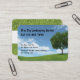 Landschaftsgestaltung und Rasen-Dienstleistungsunternehmenkartenschablone mit großem Bild eines Hinterhofs und des Baums. Entworfen für einen Landschaftsgestalter, Baumtrimmer, Rasenservice und auf unserer Visitenkartevorrathöheren als Standardgröße des großen Formats der gerundeten Ecke dargestellt.
