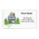 Das Zuhause-Adressetikett zeigt ein gemütliches, stilvolles Haus mit grauem Dach und blauer Seite, ergänzt durch Bäume und einen Weg. Personalisieren Sie es mit Ihren Informationen nach Wunsch.