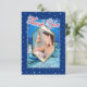 Eine blaue Winterferienszene mit geometrischem Goldrahmen lässt sich leicht mit Ihren Texten, Schriftart, Schriftart, Papierform und zwölf Papiertypen anpassen.