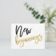 Geben Sie jemandem einen Schub und schicken Sie ihm eine Postkarte mit einer aufregenden Nachricht. Dies hat die Wörter Neuanfang in Gold und Schwarz Typografie vor einem weißen Hintergrund, der auf Wunsch in eine andere Farbe geändert werden kann.