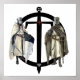 In der Mitte eine grafische Darstellung eines Schwertes, das Ende der Buchstaben T=Templer. In der Mitte das Kreuz des Ordens. An den Seiten Soldatenfiguren: Links in Templer, rechts in Johanniter. Im Bereich des Logos der MDM012. Es kann nach Belieben vielfältige Beschrift werden. Fragt einfach nach.