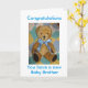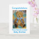 "Herzlichen Glückwunsch, dass Sie einen neuen Baby Bruder" Text auf einem Foto eines niedlichen kleinen Teddy mit einem blauen Bogen speziell für ein Kind geeignet.
