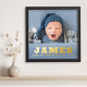 Foto-Poster mit dem Namen, Geburtsdatum, Gewicht und Länge Ihres Babys in fett gedruckten Briefen aus Gold oder Silber.