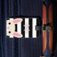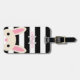 Entzückender Gepäckanhänger mit breiten Schwarzweiss-Streifen. Ihr Name im Rosa und Ihre Initiale im silbernen Grau. Und ein neugieriges Häschen, das an Ihnen blickt.