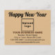 Alles Gute zum neuen Jahr! Ein Neuanfang. Ein Neubeginn. Feiern Sie diesen Januar und werben Sie auch für Ihr Geschäft. Postcard Karte, die Sie anpassen können, um Ihre geschäftliche Marke und mit Neujahr Gruß. Passen Sie es an und nutzen Sie es, um Ihre Kunden oder Kunden in diesem neuen Jahr zu begrüßen und als Marketing-Material, um Ihr Unternehmen zu werben oder Ihren Markennamen zu fördern. Anpassbare Postkarte, mit der Sie Markenbewusstsein schaffen können. Designfarben sind schwarz-dunkelbraune Texte auf hellbraunem Hintergrund. Um diese Postkarte anzupassen, laden Sie Ihr Firmenlogo hoch, geben Sie Ihren Firmennamen, Ihre Adresse, Telefonnummer, E-Mail und Website oder Ihre Social Media-Seite ein. Bitte Karo des Erscheinungsbildes nach dem Hochladen von Logos und Schriftzeichen. Wenn Ihnen das Aussehen gefällt, können Sie jetzt Ihre Bestellung aufgeben. Wenn Sie das Logo und die Texte ändern und verschieben müssen, um auf diese Postkarte zu passen, ändern Sie bitte das Design-Tool. Sie können auch die Hintergrundfarbe, die Farbe des Schriftartes und den Stil des Schriftartes im Designwerkzeug ändern. Alles Gute zum neuen Jahr! Wir wünschen Ihnen mehr Umsatz in diesem Urlaub und den kommenden Jahren.