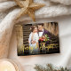 Einfache Weihnachtskarte mit niedlichem Foto, mit einem handgeschriebenen Schriftart aus Gold Glitzer, ideal für Dunkelbilder.