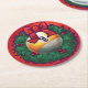 Neun Ball in Weihnachtskranz auf Rot Runder Pappuntersetzer