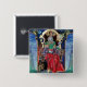 Farbenfrohe, lebendige, zeitgenössische Malerei in Gold, blau, rot, grün, braun . Ein mysteriöser hypnotischer Zauberer mit eleganten Kostümen aus rotem Samt mit einer magischen Kugel, die auf einem gotischen Thron mit Gargostilen und einer Eule sitzt. Ambient ist surreal, fantastisch, alchemisch, wo Sie sehen, wie ein Jester aus einer Tasse trinkt, ein templare Mönch fliegt auf einem Frosch, transparente Blasen, Fantasielandschaften mit Hölle Feuer, kosmisch blauer Himmel mit Sternen, Berge des Himmels, Bäume .Egg Tempera auf Holzplatte mit goldener Folie. 1989 , Miniatur Made mit malerischen Techniken von 1300 von Alessandro Lumini (c) Es ist auch ein schönes Fantasy-Design für Weihnachten, Feiertag, Geburtstag, Silvester Tag, Mardi Gras und Karneval Grüße.
