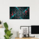 Ein grünes und rotes netzwerkähnliches Fraktal auf dunklem Hintergrund. Eine Bio Platine.