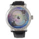 Uhr, Vintage Männeruhr mit schwarzem Lederarmband