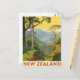 Feiern Sie die atemberaubende Landschaft Neuseelands mit dieser Vintagen Postkarte. Dieses nostalgische Reiseplakat-Design mit schneebedeckten Bergen, das sich in einem ruhigen, von üppiger Vegetation umgebenen Alpensee widerspiegelt, eignet sich perfekt für Sammler, Reisende oder alle, die Neuseelands natürliche Schönheit Lieben haben. Ideal für Souvenirs, Pfannkuchen oder das Versenden von speziellen Notizen.