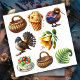 Neuseeland Kiwiana Set 5 Aufkleber. © Pick a Sticker. Auf diesem 8 Aufkleber-Blatt befinden sich alle Kiwiana aus Neuseeland, die stilisierte Bilder von einem Korbgeflecht, einem Hokey Pokey Eis, einem Fantail Vogel, einer NZ Flag auf einem Kiwi Vogel, einer Kowai Blume, einem Pavlova Dessert und einer gewölbten Farnfront enthalten.