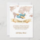 Neutral elegant world map travel airplane baby shower theme, adventure awaits baby shower theme, this design feature blue and yellow airplane fly over the gold world map decor with "Adventure Awaits" flag. Modern simple minimalist globe travel map baby shower theme, baby boy baby shower, you can customize your unique text and color.