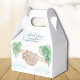 Diese niedliche Babyduschbox ist mit einer Aquarellfarbe aus einem süßen Babyhahn geschmückt, der von einem Ast hängt, gerahmt mit grünen DschungelBlätter und türkisfarbenen Wolken. Ideal für eine geschlechtsneutrale Babydusche. Original Wasserfarbe © Michele Davies.