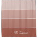 Dieser trendige Duschvorhang weist vier Streifen in verschiedenen ombre-Farbtönen aus Terrakotta, Bräune und neutralem Beige auf und Ihren Namen oder Monogramm in Schriftzeichen für ein bohes und modernes Aussehen.