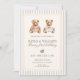This elegant twin birthday invitation features soft neutral stripes, classic typography, and two adorable watercolor teddy bears.