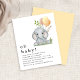 Budget Niedlich Elephant Gender Neutral Baby Dusche. Eine preisgünstige SMALLER 4.5" x 5.6" Alternative. Erhältlich in einem SEMI GLOSS 110lb CARD STOCK oder einem SATIN FINISH 80lb THINNER PAPIERSTOCK. Umschläge sind optional. Zeitgenössischer Stil und Dschungelkutte! Personalisieren Sie den Text einfach auf Ihre eigenen Daten.